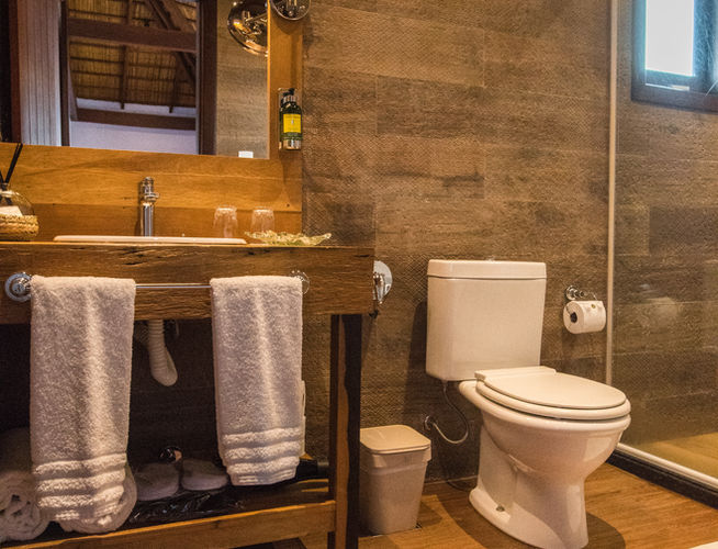 Perfeito para curtir uma estada cheia de romance e relaxamento, o Bangalô é uma mistura de barraca e chalé que possui um espaçoso deck com lareira e hidromassagem tendo como cenário uma vista panorâmica do Rio Camarinhas.