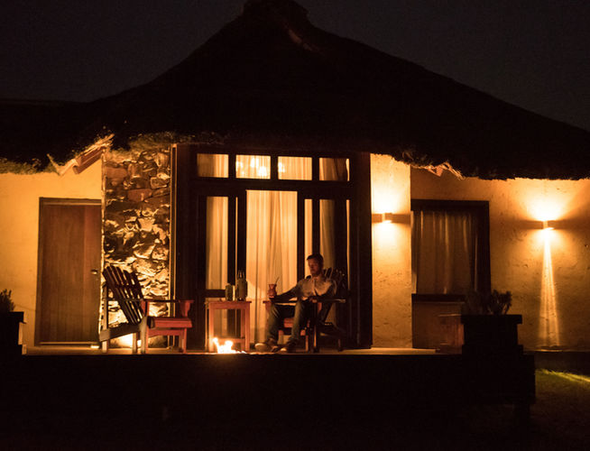 Aproveite sua estada com total privacidade em nosso Chalé, um espaço amplo que possui sala de estar com lareira e deck privativo. Ideal para acomodar famílias ou dois casais. Possui duas amplas suítes independentes com banheiras de hidromassagem e vista para os campos.
